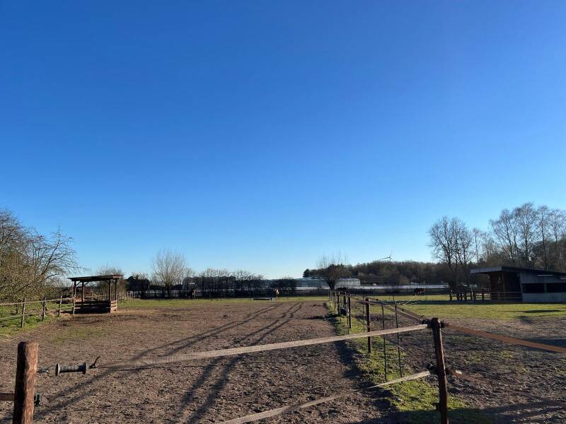 In unserem Herzstück mitten auf dem Hof leben Wallache und Stuten nebeneinander. Aktuell haben wir eine gemischte Herde zu 4 Ponys zusammenstehen. Hier ist noch genügend Platz. Dieser Offenstall ist mittels Laufweg mit dem Offenstall am Wald verbunden und aktiviert die Ponys zum laufen.